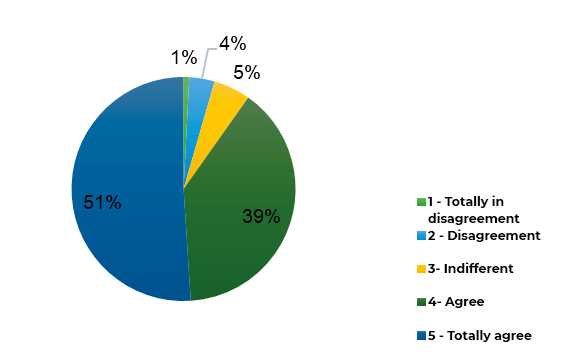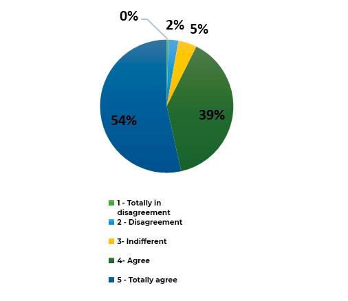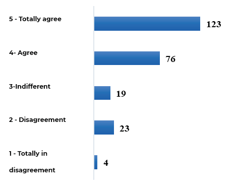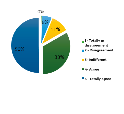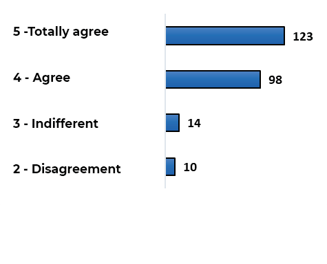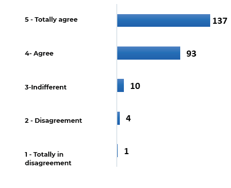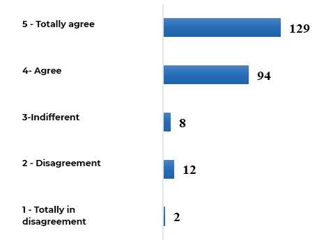 Regarding the “Waiting time to be attended”, 50% (123) reported being “totally in agreement”, followed by 31% who said they agreed. (Figure 6).