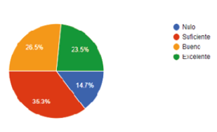 Suficiente, en esta sección los valores representan un resultado aceptable, aunque no muestran un rendimiento destacado puede haber margen de mejoras.