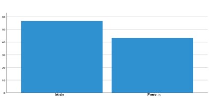 In the graph, 17 (56.7%) belonged to the male gender, followed by 13 (43.3%) to the female gender. About sex. The sex that predominated in the outpatient clinic of the social security clinic was male, which differs from the study by María Luncin, Kenny Escobar, and Cristian Arias (2020), where it is reported that 62.6% of the female sex also coincides with the study by Jhaira Sánchez (2022), where it is reported that the predominance of sex in 54% is male.