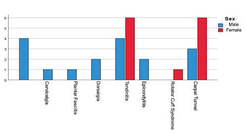 Sex and musculoskeletal disorders in the outpatient medical staff of the Amistad Japón Nicaragua medical clinic, Granada.