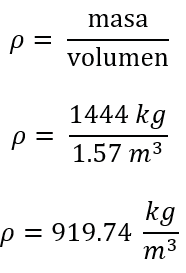 “Por tanto, la densidad del agua contenida en el tanque es de 1000 kg/m3”