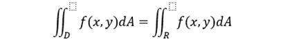La integral doble de f sobre D se define como la integral de f sobre R: