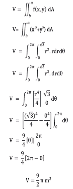 Antes de resolver las integrales dobles para el cálculo del volumen de un sólido es necesario conocer las variables necesarias para su desarrollo las cuales son: los límites de integración, una función y el diferencial de área en coordenadas polares.