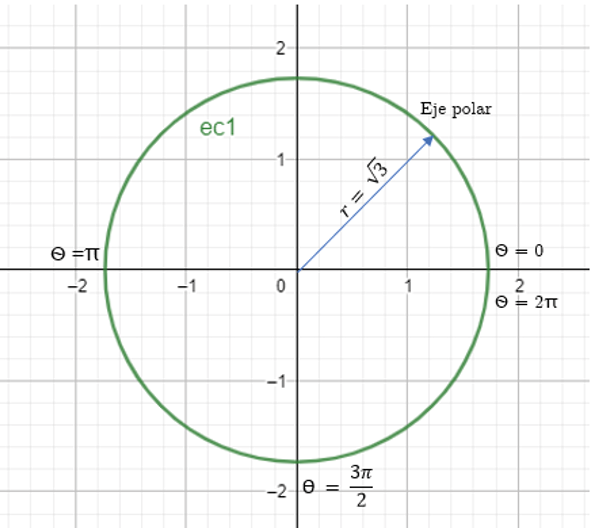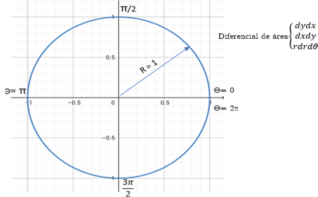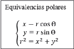 x2+y2= 1 (convertir la ecuación cartesiana a ecuación polar para encontrar el radio tomando en cuenta las equivalencias polares de la parte derecha)