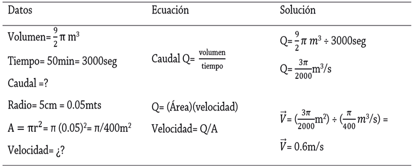 Cálculo del caudal volumétrico y velocidad de circulación del fluido en la tubería