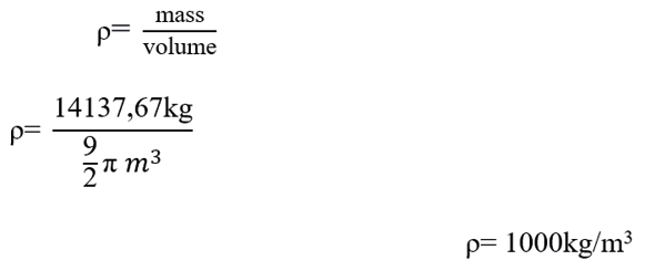 "Therefore, the density of the water contained in the tank is 1000 kg/m3"