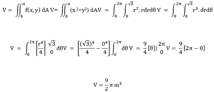 Before solving the double integrals for the calculation of the volume of a solid, it is necessary to know the variables necessary for its development, which are: the limits of integration, a function, and the differential of area in polar coordinates.
