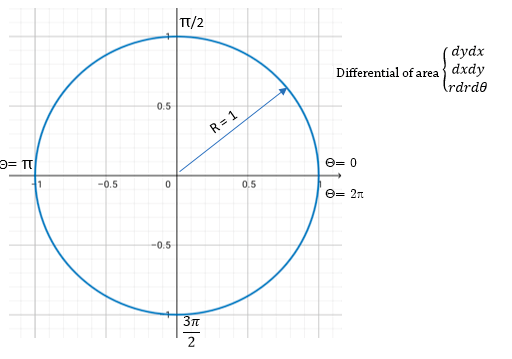 Calculation of the integration limits using polar coordinates, taking into account that the area differential is: