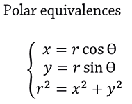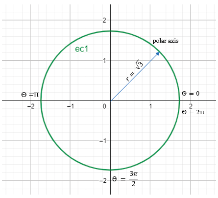 x2+y2= 1 (convert the Cartesian equation to the polar equation to find the radius taking into account the polar equivalences on the right side)