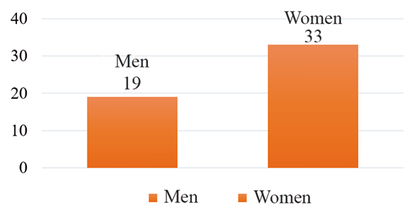 According to the sex of the patients studied, the most predominant to suffer from high blood pressure and diabetes mellitus are women, with 33 of the 52 patients belonging to this group.