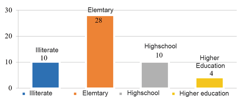The most affected level of schooling of the patients studied with arterial hypertension and diabetes mellitus are those who have completed or incomplete primary school, 28 of the 52 patients diagnosed with arterial hypertension and diabetes mellitus. These results are related to the study by Doris, A, and Katheryne, Z, (2014) mention that 55% of the older adults in the Picsi 2013 Diabetes and Hypertension Program are female and 45% male, with the most affected level of schooling being those who completed primary school with 40%.