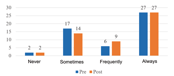 The frequency with which patients diagnosed with high blood pressure and diabetes mellitus who attend the Buena Vista health post, Carazo, Nicaragua, January-February 2023 take 4-8 glasses of water per day, before and after educational intervention.