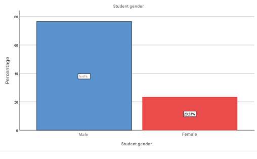 Figure 2 shows the difference between the number of males and females in the classroom, since 76.47% are males and only 23.53% are females.