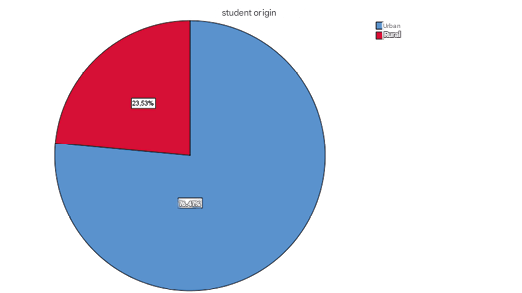 Figure 3 indicates the distribution of students by their place of origin, where 76.64% belong to the urban area and 23.53% belong to the rural area, this distribution is according to what was expressed by the teacher of the class group, is that the school as one of its policies given the demand of students from the rural areas of the municipality of Santa Teresa is that the morning shift is guaranteed to students from remote rural areas and in the afternoon students from urban areas are located.