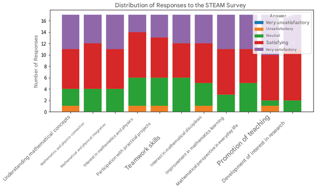 Most students perceived the STEAM strategy as a catalyst for learning in mathematics, rating it as satisfactory or very satisfactory, with an average grade above 4.