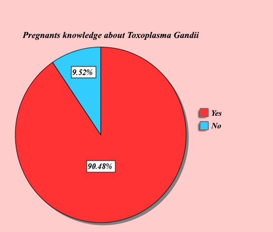 The level of knowledge about Toxoplasma Gondii can play a very important role in the health of these pregnant women since 90.48% had a level of positive knowledge about toxoplasmosis but the ideal would be that 100% of the participants had it for what This ignorance of 9.52% about this disease and its consequences lead to 23.8% of positivity according to the research.