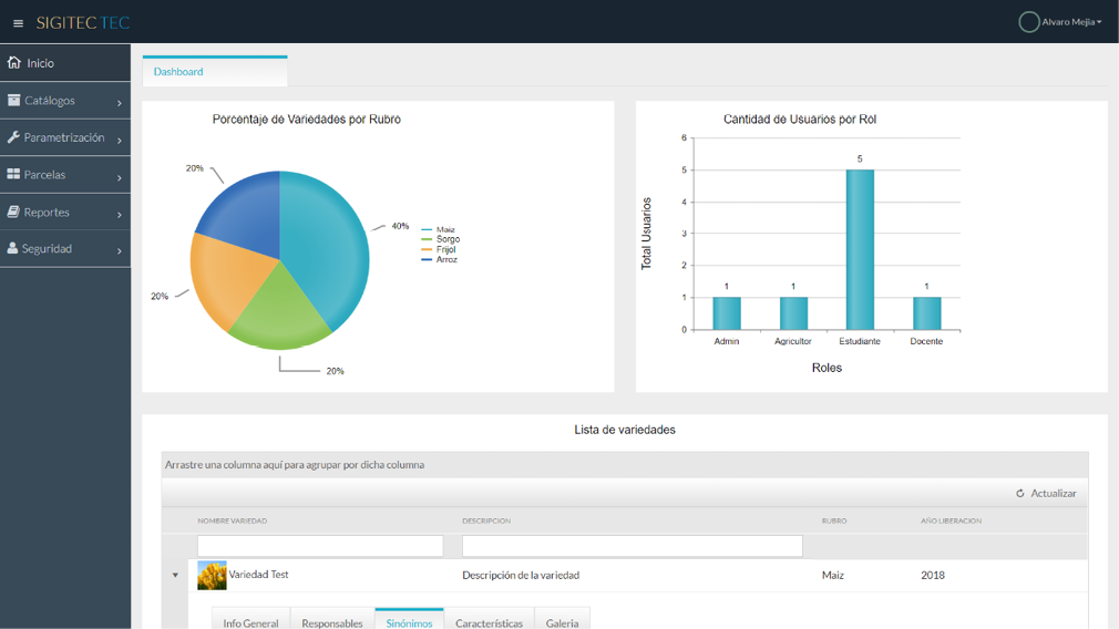 Con respecto a la información general de cada variedad: Datos de la persona investigadora de la tecnología, Rubro y el nombre de la Variedad, Nombre común o sinónimos de dicha variedad, Instituciones responsables de la selección del material y liberación como tecnología, además del año en que fue liberada, Fotografías de la planta, de la semilla y el perfil de dicha planta (ya sea de Mazorcas, Espigas, Vainas, Granos, Plantío)