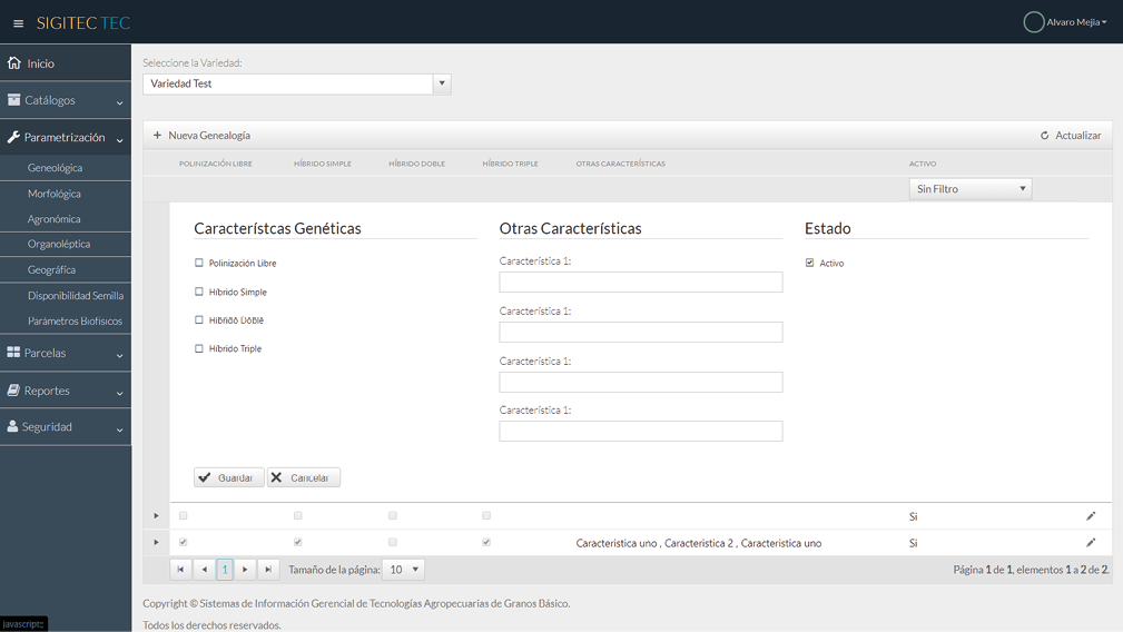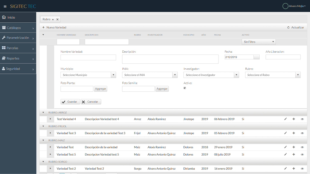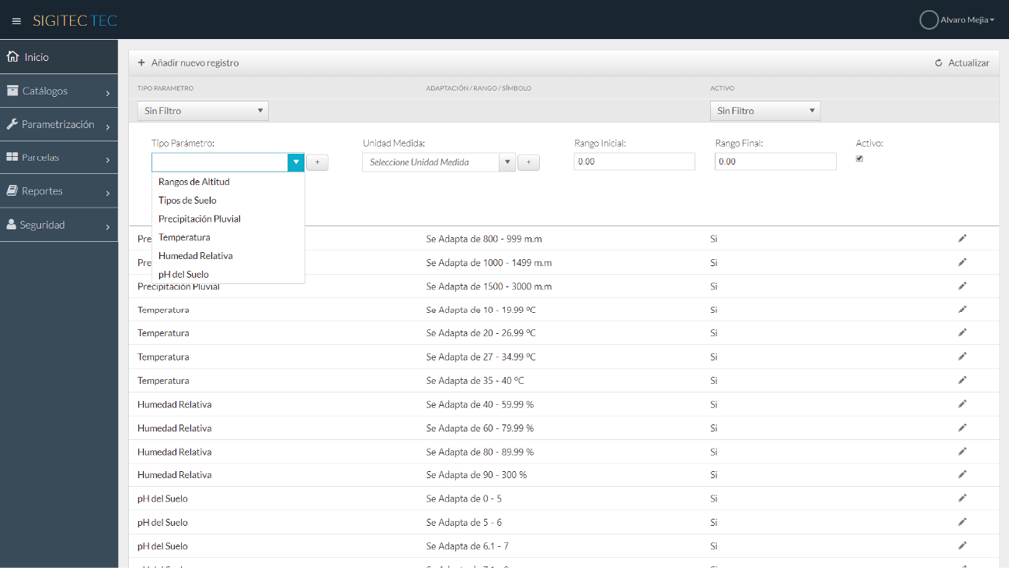 Figura 6: Administración de cada parámetro que pueda existir para adaptabilidad de las variedades.