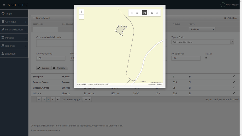 Figura 8: Administración de cada parcela para su análisis correspondiente.